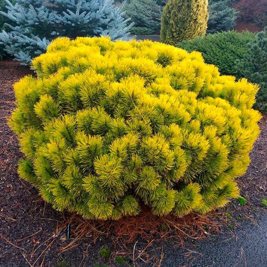 Сосна гірська Carstens Wintergold - вічнозелений, плоско округлий, пізніше подушкоподібний, компактно зростаючий, кулястої форми, карликовий або середнього розміру кущ. В10 років досягає близько 0,4 м висоти. Сосна гірська Карстенс Вінтерголд - справжнє маленьке сонце, яке пізньої осені та ранньою весною буде створювати піднесений настрій, незважаючи на похмуру погоду. Дивує і зачаровує неймовірне перетворення зеленої кульки в золотий, а потім в оранжевий з відтінком мідного, ліхтар.