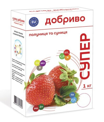 Супер Добриво — це органо-гранульоване добриво, спеціально розроблене для забезпечення рослин полуниці та суниці всіма необхідними макро- та мікроелементами для гарного росту, смачного врожаю та стійкості до хвороб.