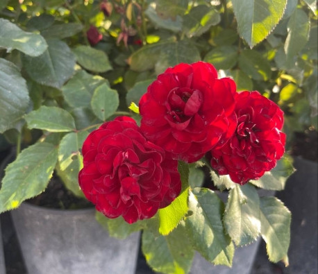 Троянда Торнадо – це багаторічний чагарник з родини розових, популярний серед садівників завдяки яскравому цвітінню. Кущ виростає до 80-100 см заввишки, має міцні пагони та темно-зелене блискуче листя. Квітки чашоподібної форми, насичено-червоного кольору, зібрані в суцвіття по 3-15 штук. Цвітіння рясне та тривале, починається влітку і триває до перших заморозків. Троянда Торнадо віддає перевагу сонячним ділянкам з родючим, добре дренованим ґрунтом. Вона досить морозостійка і може зимувати без укриття в більшості регіонів України. Цей сорт відрізняється високою стійкістю до хвороб та шкідників, а також добре переносить дощ.