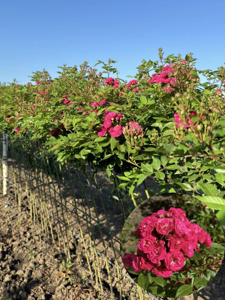 Загалом, це рослина з густою кроною, вкритою яскравими, махровими квітками насиченого рожевого кольору. Квіти зібрані в великі суцвіття, які можуть містити до 180 бутонів! Цвітіння починається пізніше, ніж у більшості інших сортів троянд, але триває практично безперервно до самих заморозків.